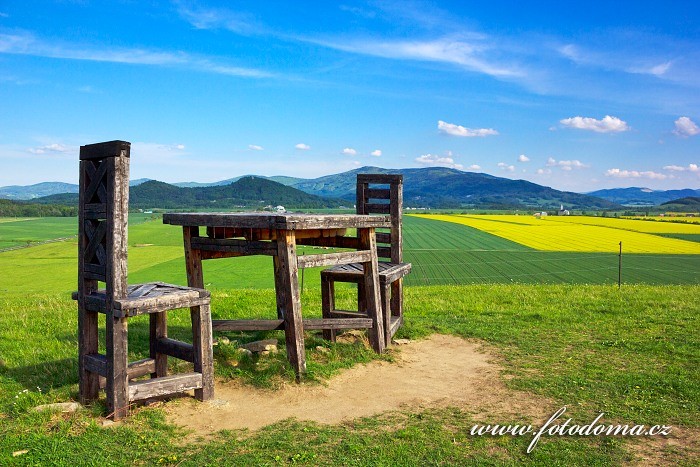 Obrázek | Velikost souboru: 125 Kb Místo: Žulová GPS: 50° 1'35.011“N, 17° 4'18.534''E Vzdálenost od Jeseníku: 20 km Popis: Odlesněné návrší nedaleko Skorošic u osady Sedm Lánů vedle silnice č. 60 z Jeseníku do Javorníku. Přes poměrně malou výšku poskytuje zajímavý kruhový výhled. Nepřehlédnutelný je Lánský vrch díky svérázné výzdobě vrcholu. Židle na Lánském vrchu nejsou reklamou nábytkářské firmy, jsou dílem neformální skupiny mladých lidí. Náročnost: Vhodné i pro děti | |