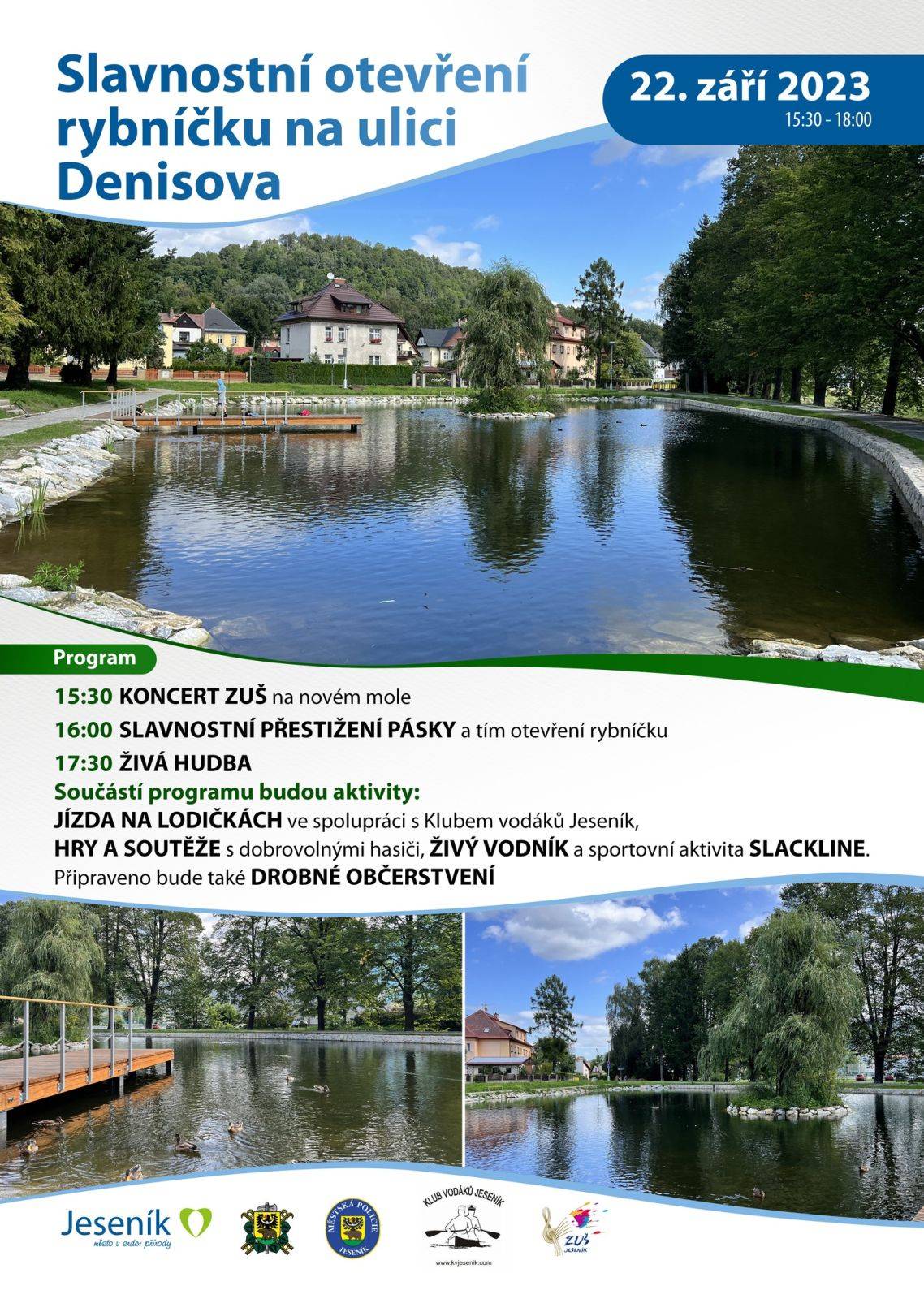 Jeseničtí si mohou užívat dalšího přitažlivého místa pro odpočinek. Oblíbený rybníček na ulici Denisova má za sebou rozsáhlou revitalizaci. Slavnostní otevření se uskuteční v pátek 22. září v 15.30 hodin. Těšit se můžete na koncert ZUŠ Jeseník, lodičky nebo živého vodníka...