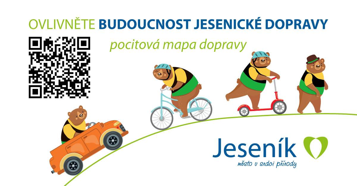 Jaké jsou podle Vás problémy v automobilové, pěší, hromadné nebo cyklistické dopravě? Chybí Vám někde chodníky, místa pro odpočinek, cyklostezky nebo parkovací místa? Na kterých místech se jako chodec, cyklista nebo řidič necítíte bezpečně? Řekněte nám o tom pomocí pocitové mapy dopravy, která je dostupná po načtení QR kódu nebo jí naleznete na webových stránkách www.nasjesenik.cz v sekci Plán udržitelné mobility.