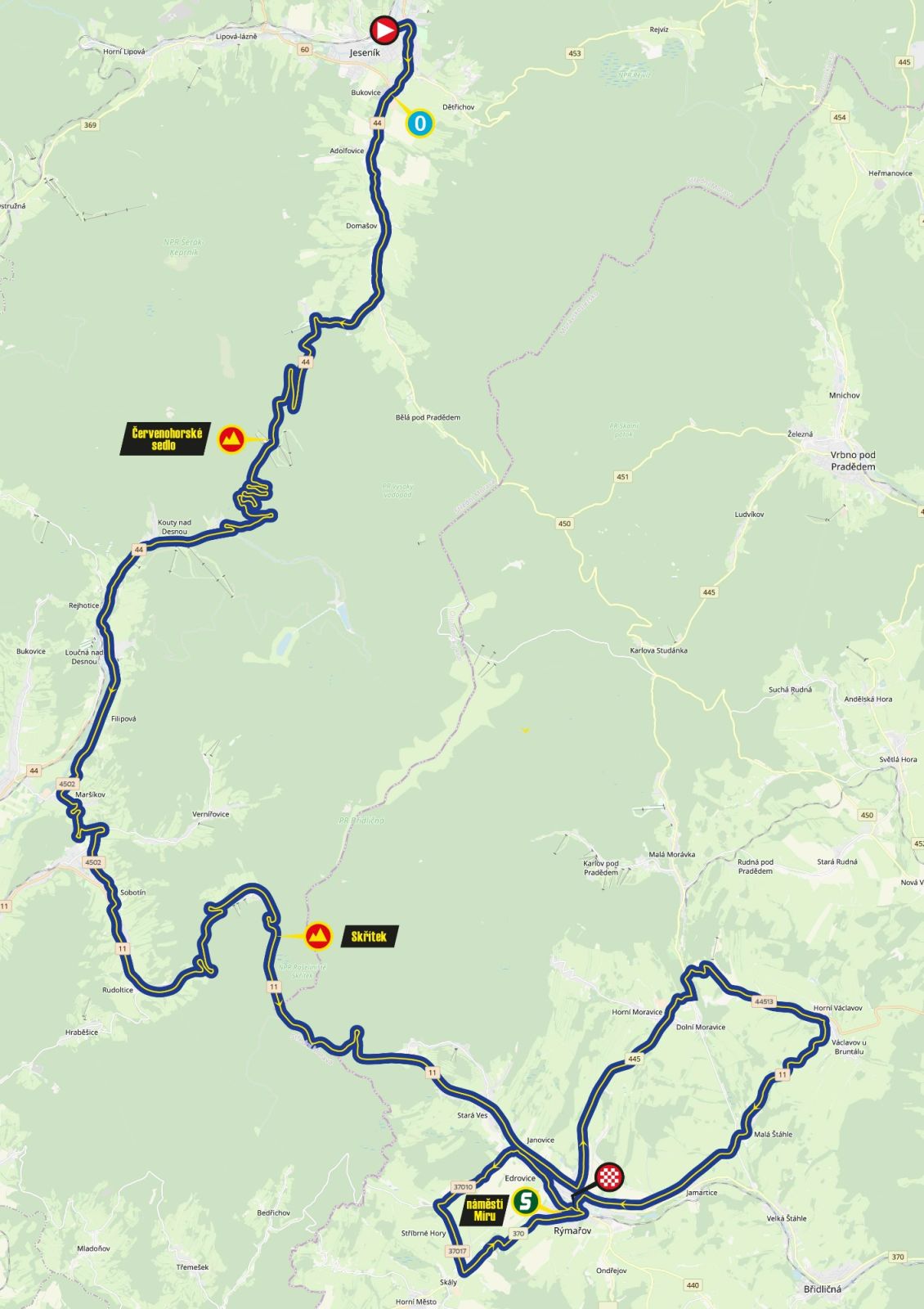 - 1. etapa – 9. června: Jeseník – Rýmařov (121,9 km)