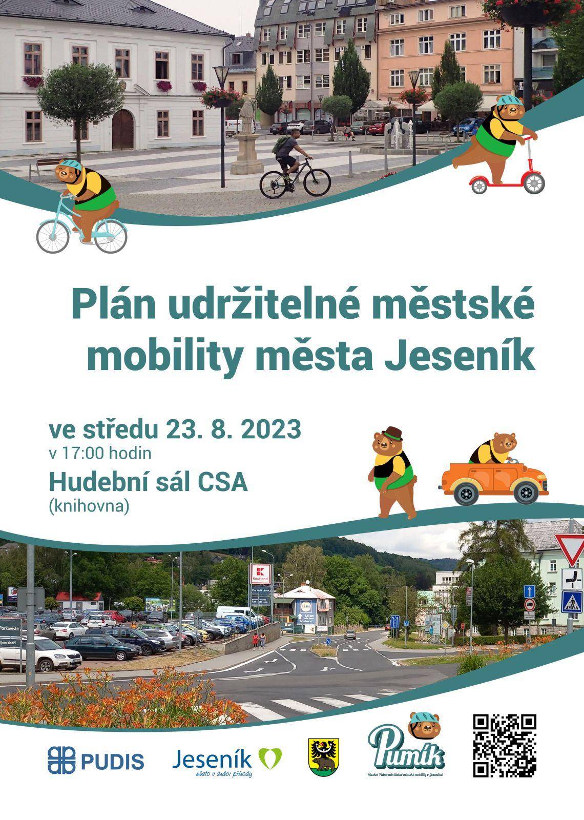Návrhová část Plánu udržitelné městské mobility města Jeseník je takřka hotová. Přijďte se s navrženými opatřeními seznámit, a to ve středu 23. srpna 2023 v 17:00 do hudebního sálu CSA. Budeme se těšit na vaši účast a zejména na zpětnou vazbu. Vaše názory jsou pro nás důležité, protože chceme vytvořit plán mobility, který bude skutečně odpovídat potřebám našeho města. Více informací naleznete na www.nasjesenik.cz.