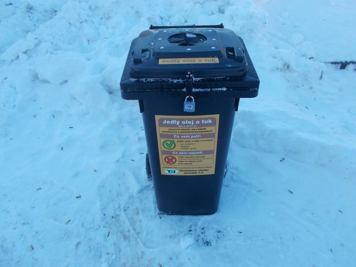 Použité oleje a tuky slévejte do plastových lahví a před vhozením do nádoby řádně uzavřete. Nevhodné jsou skleněné obaly, které se mohou rozbít nebo krabičky s víčky, která se po vhození otevřou a obsah vyteče. Vhodné nejsou ani papírové obaly (např. krabice od mléka) – olej postupně prosákne ven.