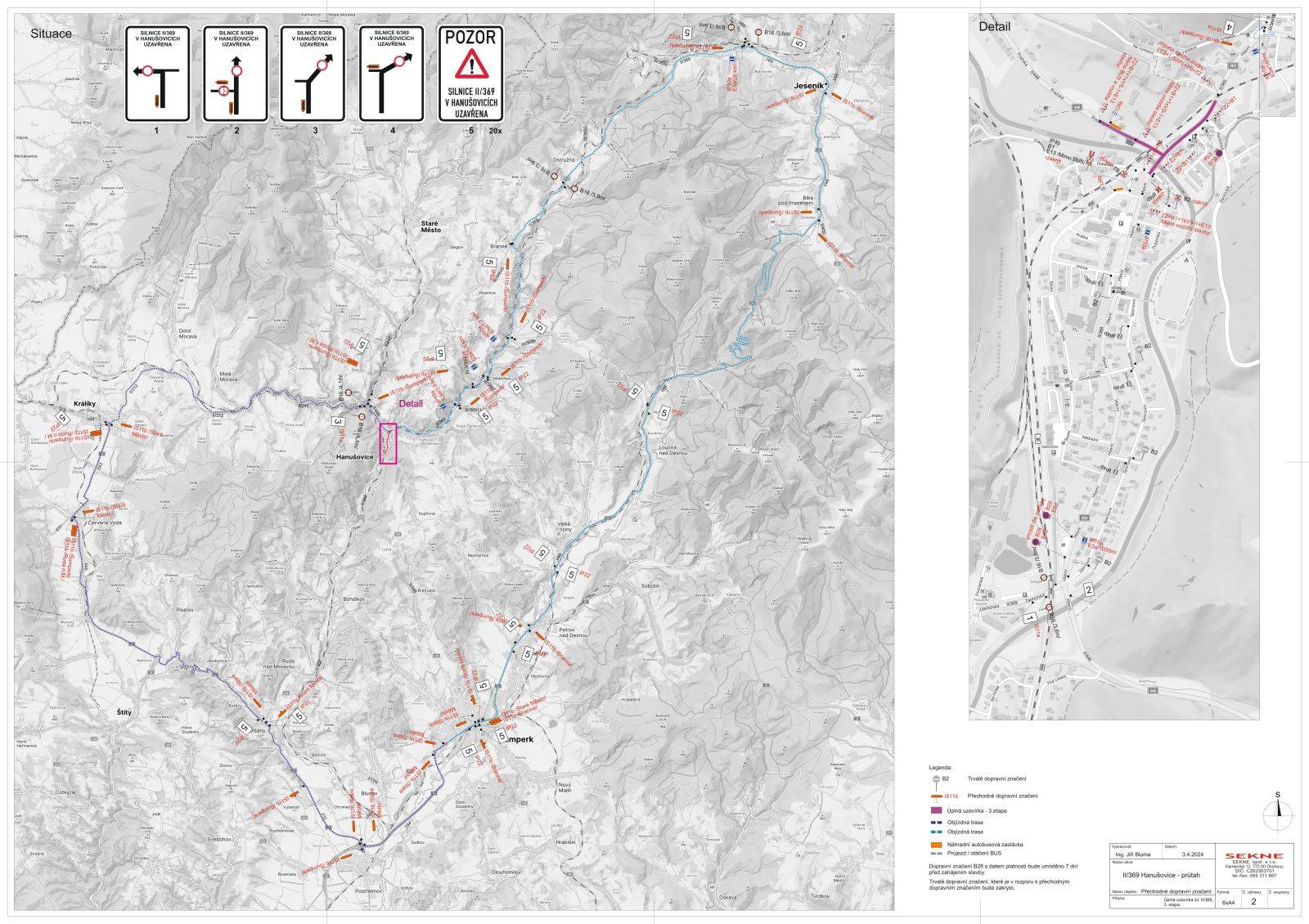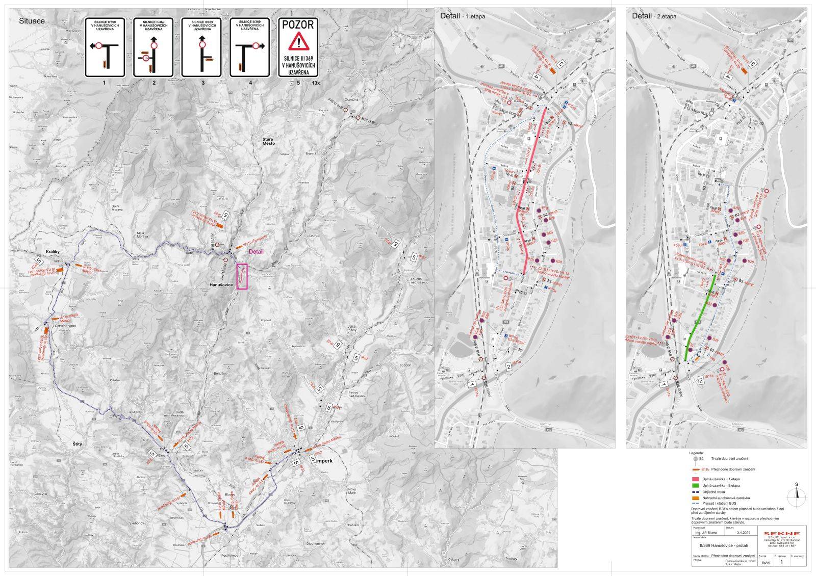 V pondělí 22. dubna začne v Hanušovicích dlouho očekávaná oprava silnice č. II/369. Z toho důvodu dojde k úplné uzavírce tohoto frekventovaného průtahu, a to až do čtvrtku 29. srpna. Olomoucký kraj rozdělil opravu cesty v Hlavní ulici do tří etap. Ve 3. etapě bude přechodným dopravním značením na uzavírku upozorněno již od Jeseníku. Mapy uzavírek a objízdných tras naleznete v příloze.