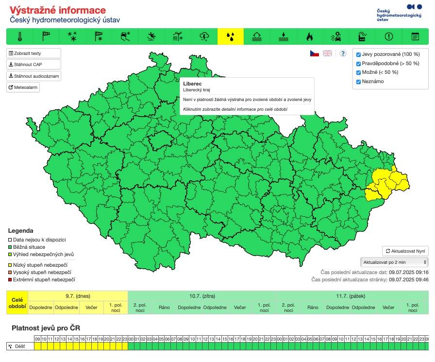 AKTUÁLNÍ STAV DLE ÚDAJŮ ČHMÚ