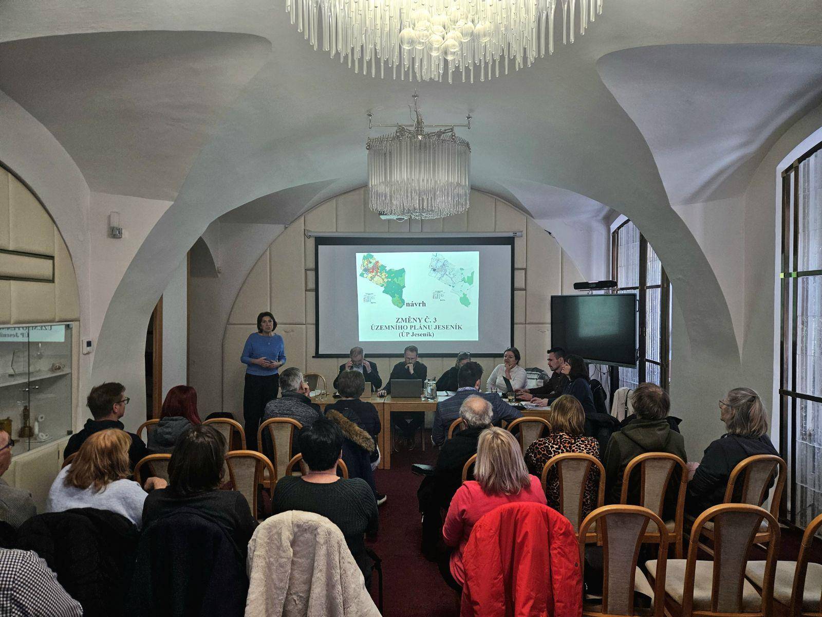 Ve středu 7. ledna 2026 proběhlo v zasedací místnosti radnice veřejné projednání návrhu Změny č. 3 územního plánu Jeseník. Přítomní občané se mohli seznámit s navrhovanými úpravami a vznést své dotazy či podněty. Návrh je i nadále k nahlédnutí na webových stránkách města v sekci Územní plány obcí a rovněž osobně na Městském úřadě Jeseník, Odboru stavebního úřadu a územního plánování. Písemné připomínky k věcným změnám v návrhu může v souladu se stavebním zákonem uplatnit každý, a to nejpozději do 22. ledna. Více informací zde.