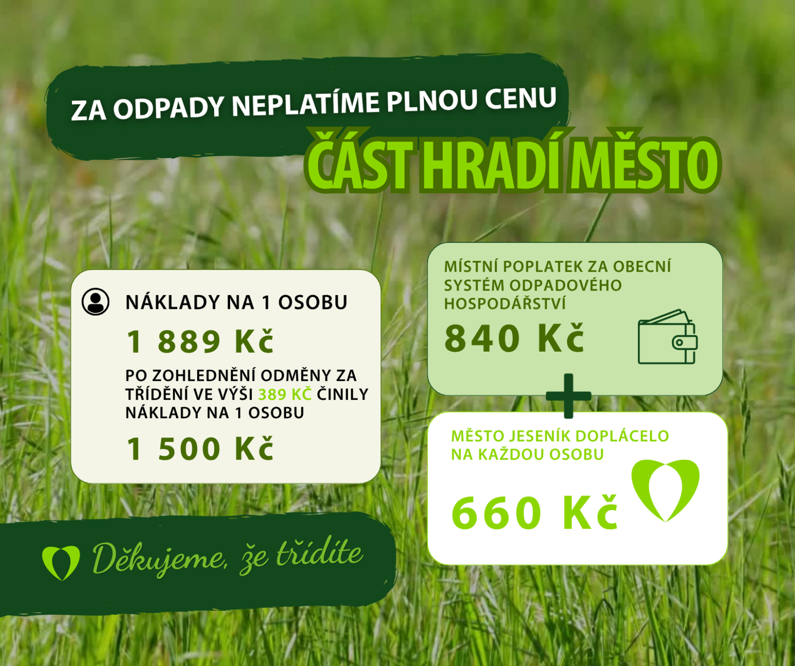 Město Jeseník už má spočítáno, kolik stálo odpadové hospodářství za rok 2025. Díky odměnám za třídění vyšly náklady zhruba na 1 500 Kč na osobu, zatímco poplatek pro občany zůstává na 840 Kč. Rozdíl město dlouhodobě dorovnává. Zároveň se potvrzuje, že třídění má smysl: pomáhá náklady snižovat a omezuje množství odpadu, který končí na skládce...