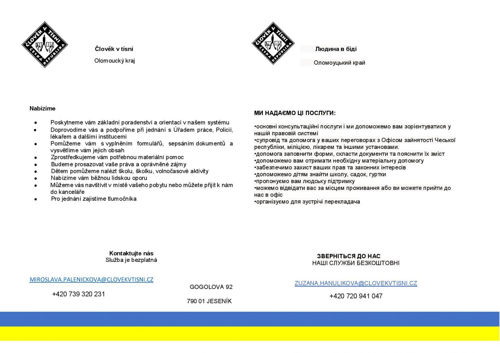 - SOS Ukrajina Organizuje Člověk v tísni. Sbírkový účet: 0093209320/0300.