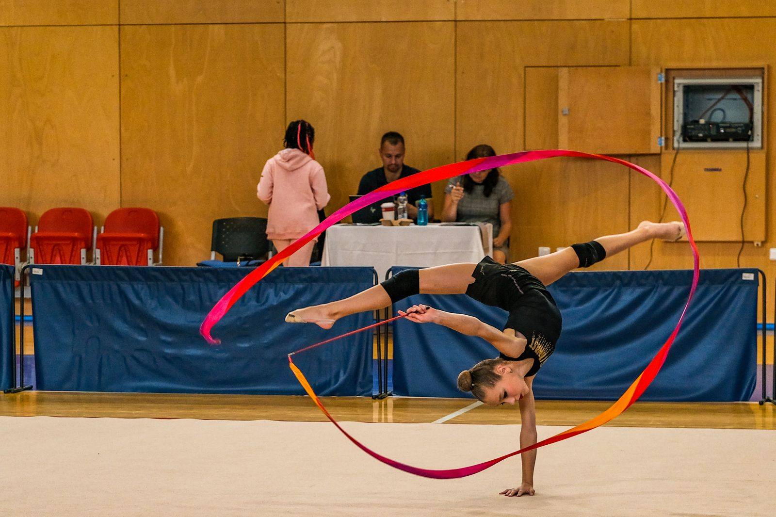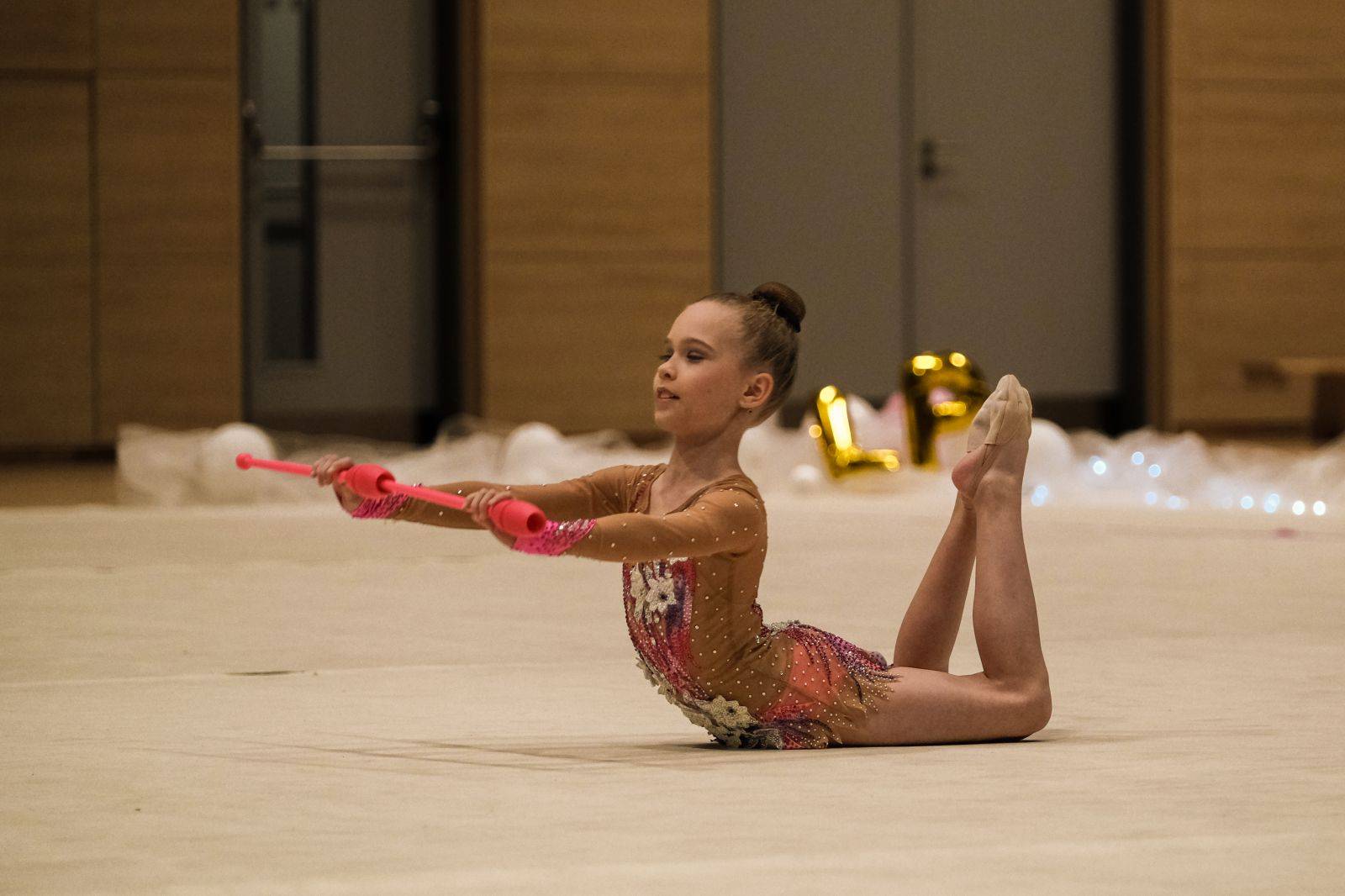 Pracujeme s dětmi od čtyř let. Pomalu se oťukávají v hale, učí se správnému držení těla, základní koordinaci a všechny hned chtějí cvičit s tou dlouhou stuhou, která je pro starší závodnice a na gymnastická miminka se okamžitě namotá.