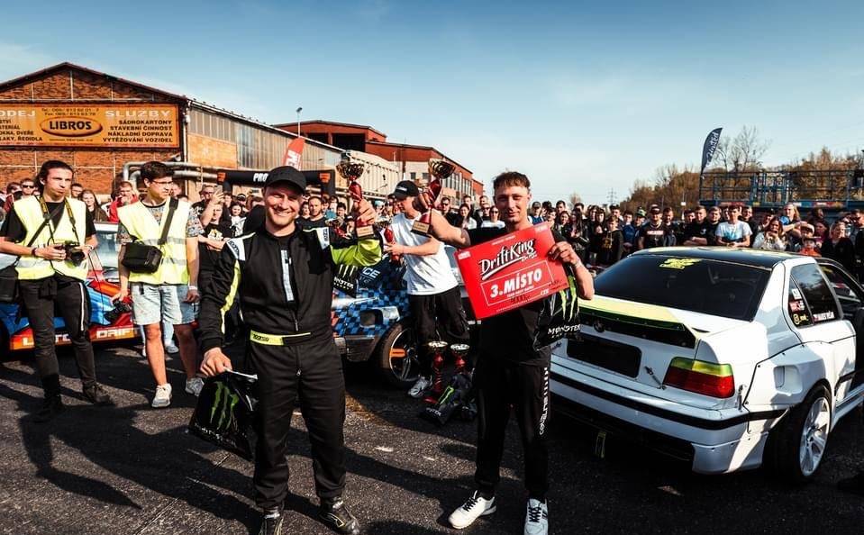 Je to tak, zadařilo se. Bylo to 30. dubna na závodech v ostravském Centru bezpečné jízdy Libros. Ten areál je super a pořadatelé tam dokáží vymyslet zajímavé tratě. Spolu s Lukášem Blažkem z Vyškova jsme závodili v netradiční disciplíně Team Drift Chase, která se jezdí ve dvou. Jedno z vozidel je „leader“, který má za úkol projet trať kvalifikačním způsobem, a druhý je „chaser“, který jej musí co nejpřesněji stíhat. Dostali jsme se v silné konkurenci až do TOP 8 a nakonec jsme skončili na třetím místě, což je velkým překvapením a motivací.