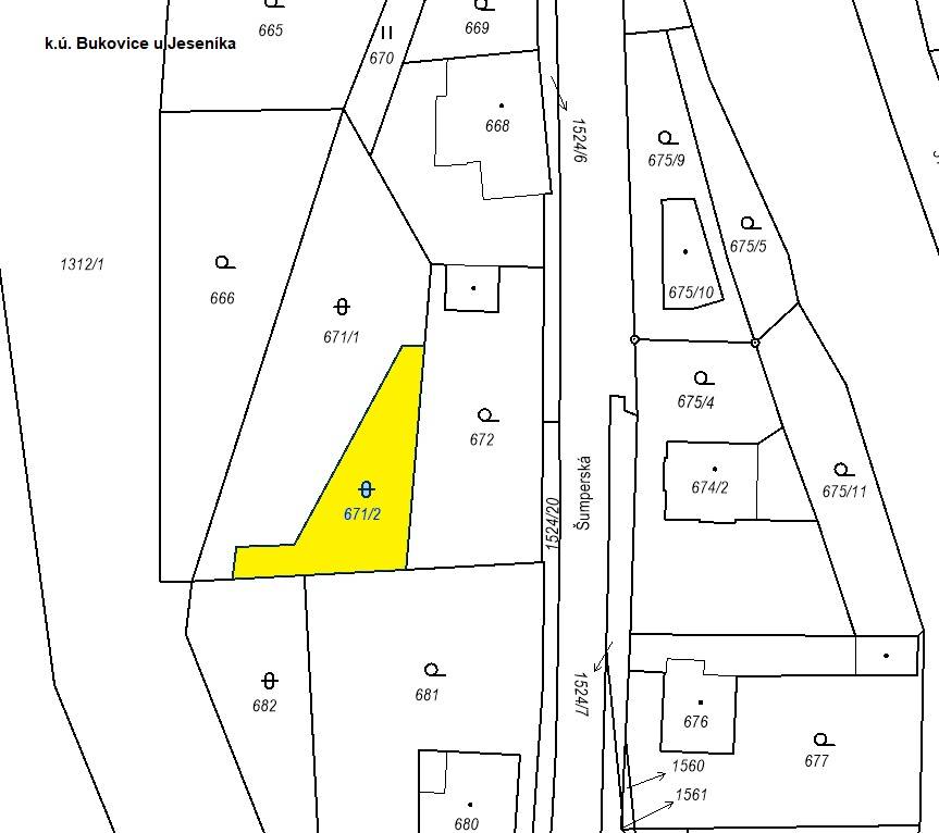 Obrázek | Velikost souboru: 106 Kb | 18.02.2026 10:32:00 Marek Kačor vlozil soubor 18.02.2026 10:32 k záznamu ÚZSVM - Aukční vyhláška na prodej pozemku p.č. 671/2 v k.ú. Bukovice u Jeseníka , | |