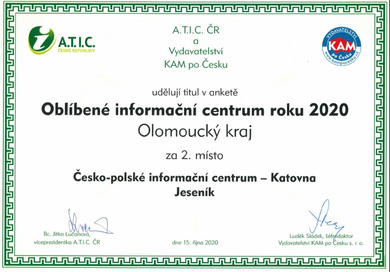 - TURISTICKÉ INFORMAČNÍ CENTRUM JESENÍK - komplexní informace o městě Jeseník a jeho okolí, prodej vstupenek z rezervačního systému MKZ Jeseník, prodej regionálních produktů a suvenýrů, map a bonusové karty OLOMOUC REGION CARD (přízemí budovy).