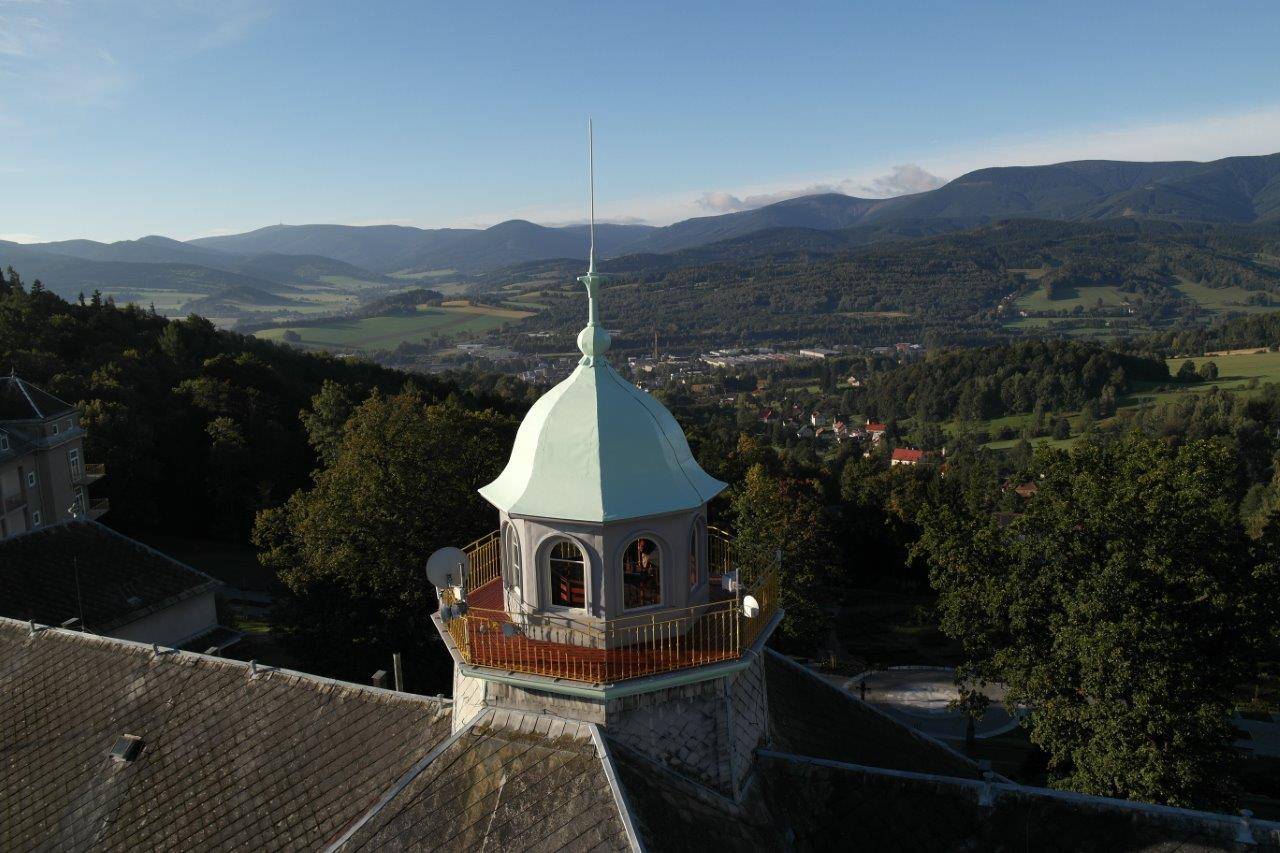Vyhlídka z jesenických lázníUž před více než sto lety se inspiroval architekt Leopold Bauer zdejší nádhernou přírodou a na kopci zvaném Gräfenberk vybudoval Sanatorium Priessnitz. Tuto monumentální stavbu završil „kouzelnou věžičkou“ s kruhovým ochozem a tak na nejznámější budově Jesenicka vznikla Lázeňská vyhlídka. Lázeňským hostům se z ní nabízí neopakovatelný zážitek z pohledu do Pradědovy říše.