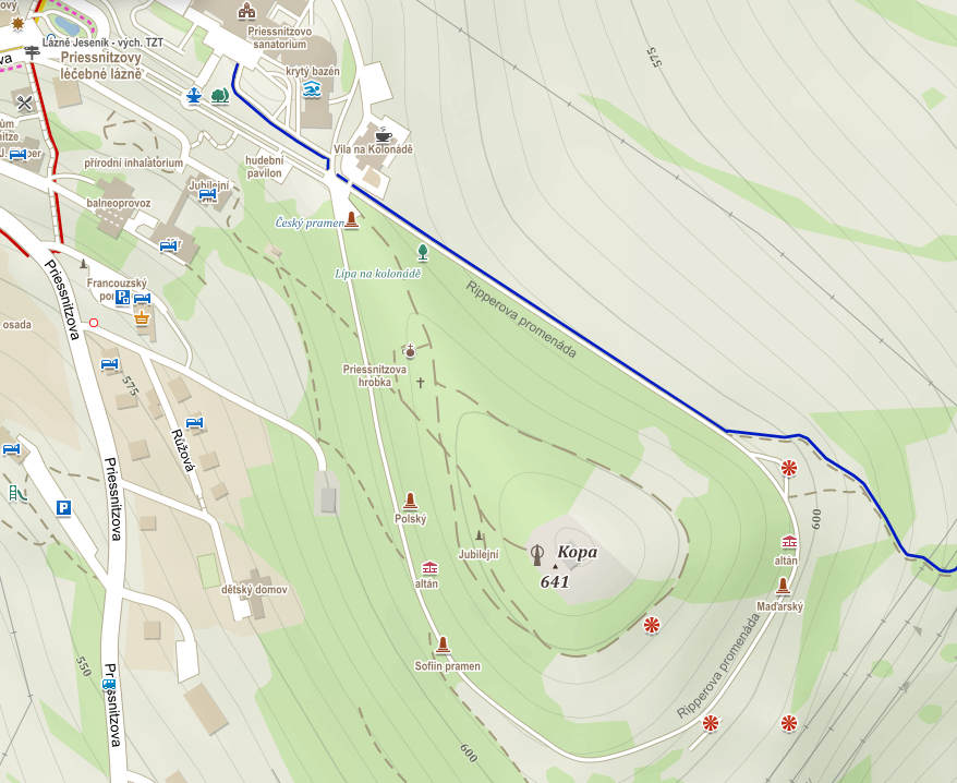 Ripperova kolonádaPromenáda vznikla v polovině devatenáctého století, pojmenována byla po Johannovi Ripperovi, zeti zakladatele lázní Vincenta Priessnitze, který po jeho smrti převzal vedení lázní. Nabízí možnost procházky, ale také možnost si zaběhat. |