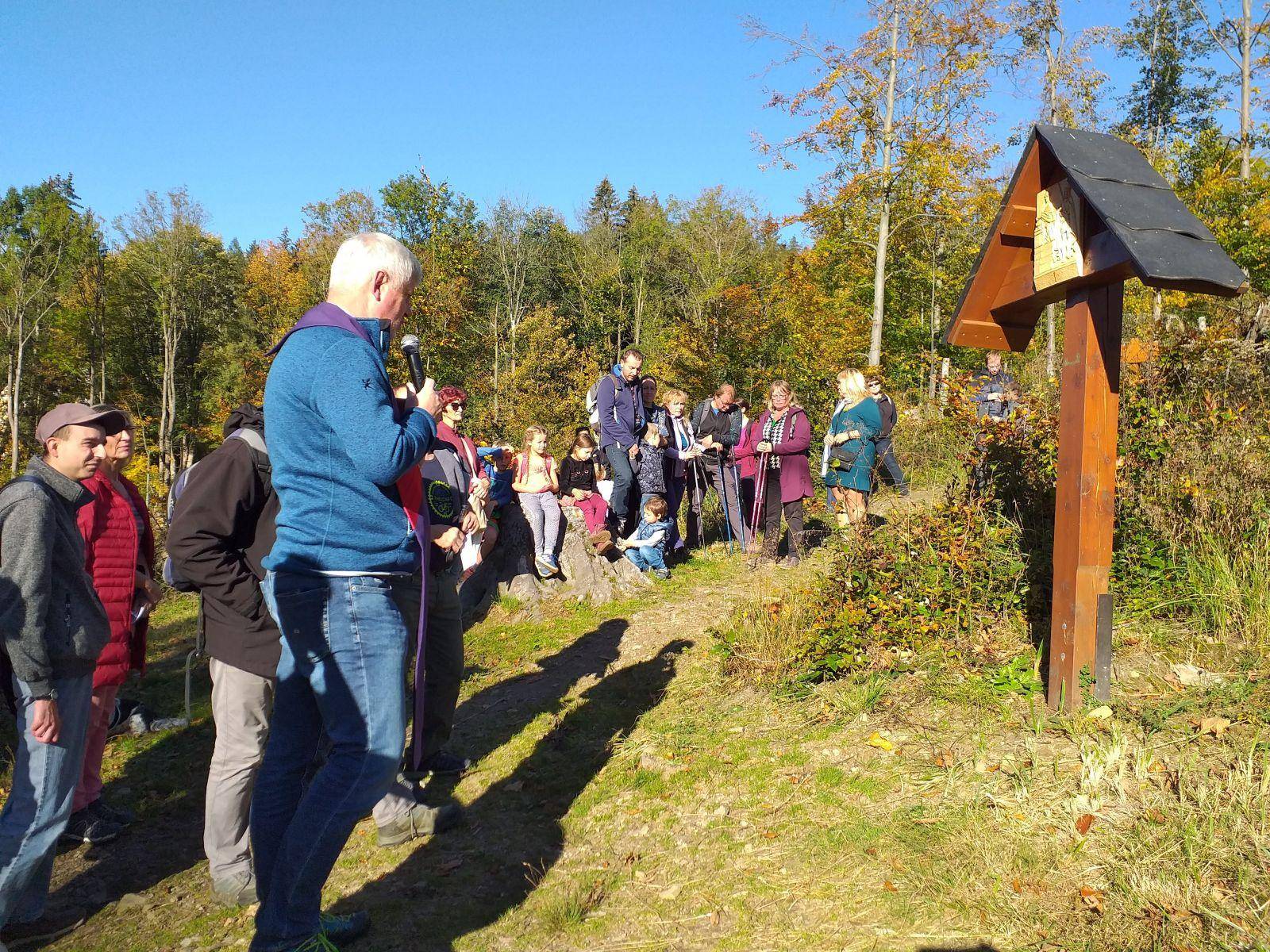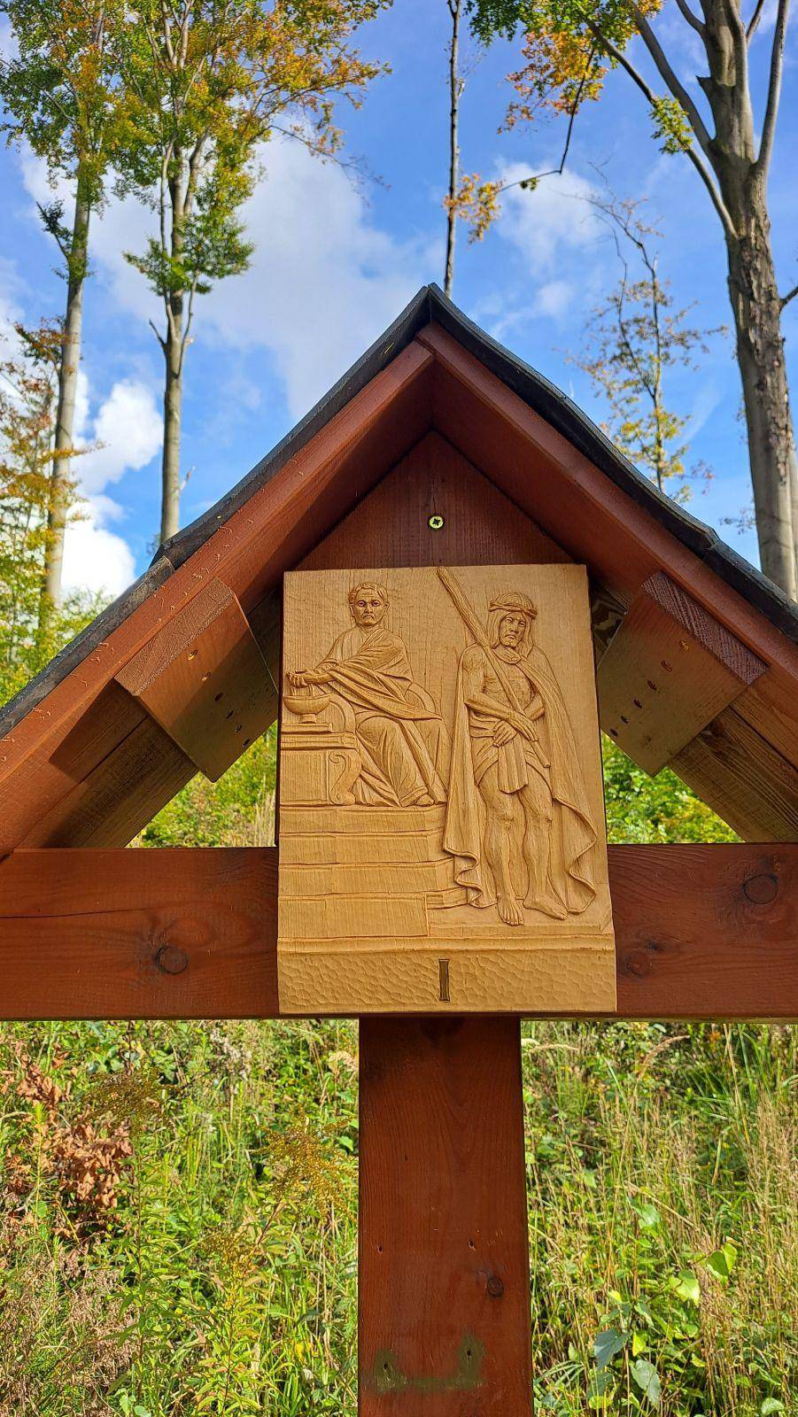 Křížová cesta v Jeseníku Křížovou cestu tvoří čtrnáct dřevěných křížů s kapličkou s pašijovým obrázkem. Cesta vychází z města od Anglického pramene a končí u kaple svaté Anny na vrcholu kopce. Galerie